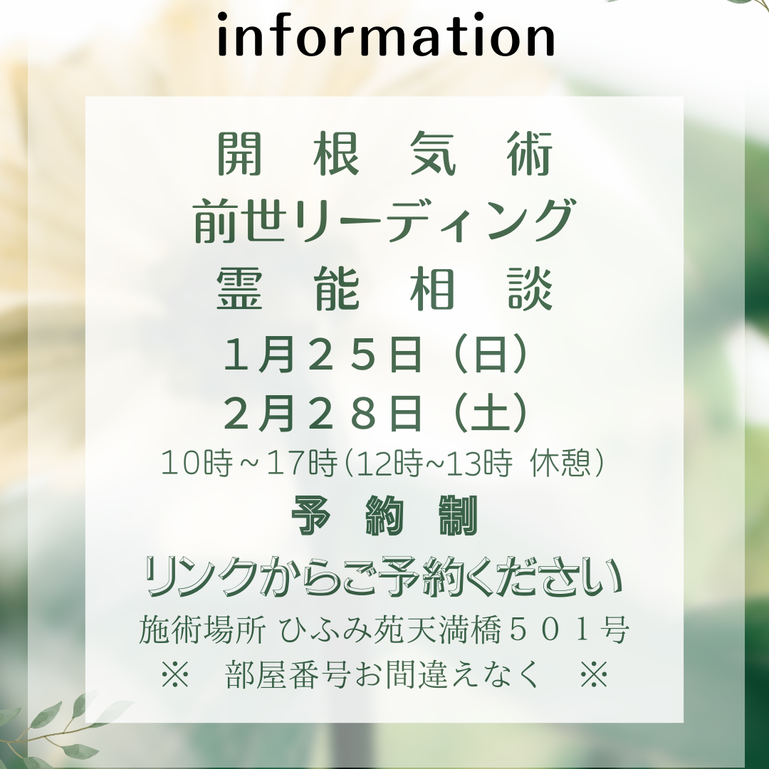 開根気術と前世リーディング、面談霊能を同日に行います。